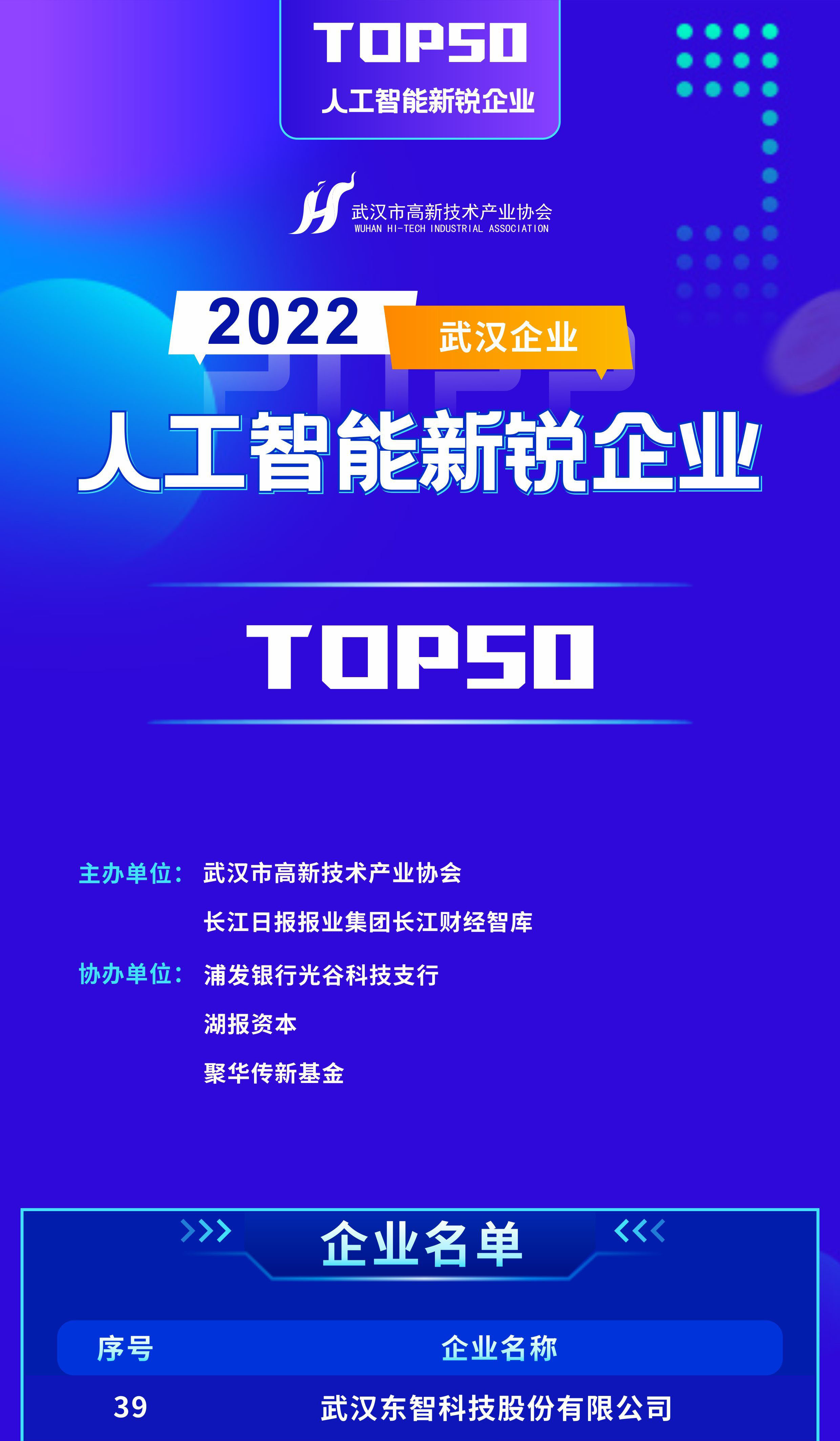 “2022年武汉市人工智能新锐企业名单TOP50榜单”